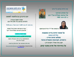 השנה, עקב התפרצות מחודשת של מגפת הקורונה ושלג כבד שירד באזור ירושלים, נאלצנו להעביר את הרצאתה של עירית אברמסקי דרך הזום, כאשר בבית וילנה נאספו כ-5 חיילים בלבד ומספר קטן של חברי הנהלת האיגוד.